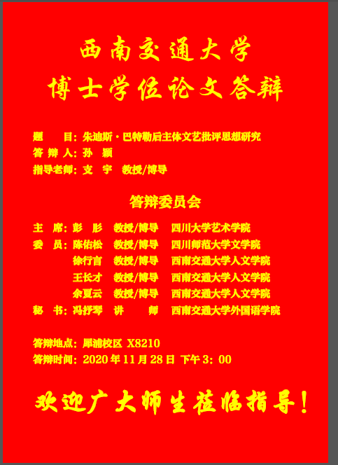 【博士研究生】西南交通大学博士学位论文答辩海报