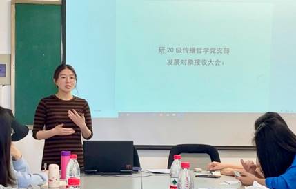 研2020级传播哲学党支部于X8310室召开了预备党员接收大会及专题学习会议。本次会议主要分为两部分,第一部分为预备党员接收大会,由支部书记周桎宏同志主持。第二部分为党支部专题学习会议,由杨谨瑜同志主持。支部全体党员及两名发展对象参加了此次会议。