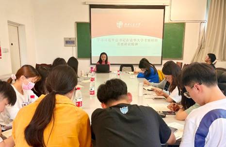 接着,杨谨瑜同志对新修订的《中国共产党普通高等学校基层组织工作条例》作了系统的介绍。从中我们可以体会到,《条例》的修订高度遵循政治性、原则性、实践性和针对性四项原则,其修订和实施,对于全面贯彻党的教育方针,落实立德树人根本任务,建设高质量教育体系,培养社会主义建设者和接班人,具有十分重要的意义。