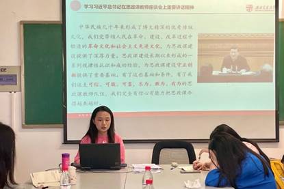 会议第二部分开展了党支部专题学习。首先,杨谨瑜同志带领支部成员学习习近平总书记在思政课教师座谈会上重要讲话精神。习近平总书记对思想政治理论课有“三个强调”。一是办好思想政治理论课,最根本的是要全面贯彻党的教育方针,解决好“培养什么人、怎样培养人、为谁培养人”这个根本问题。二是思想政治理论课是落实立德树人根本任务的关键课程。三是办好思想政治理论课关键在教师,关键在发挥教师的积极性、主动性、创造性。教师政治要强、情怀要深、思维要新、视野要广、自律要严、人格要正,才能更好地教育引导学生立鸿鹄志,做奋斗者。我校朱铃教授认为要坚持马克思主义信仰,使认真学习成为一种习惯,循循善诱,以理服人,以情动人,优化语言表达能力才能讲好思政课。