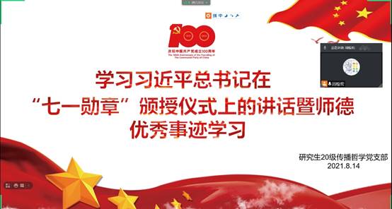 研究生2020级传播哲学党支部组织开展学习习近平总书记在“七一勋章”颁授仪式上的重要讲话暨师德优秀事迹学习的主题党日活动。