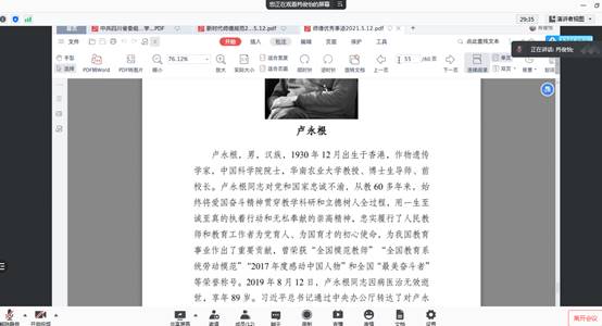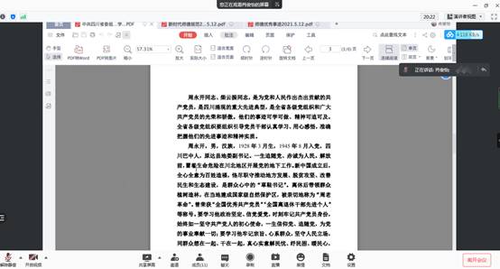 会议伊始,大家重温习近平总书记在“七一勋章”颁授仪式上的重要讲话精神,中国共产党一百年来披荆斩棘、勇往直前作出了彪炳史册的伟大贡献。从“七一勋章”闪硕的光芒中,我们读到了党的辉煌历史与坚定不移。紧接着肖俊怡同志分别介绍了“七一勋章”获得者周永开同志、柴云振同志的先进事迹。周永开同志、柴云振同志,是用自己的行动践行初心与使命的共产党员,是四川涌现的重大先进典型,是全省各级党组织和广大共产党员的光荣和骄傲。他们的事迹可学可做、精神可追可及。
