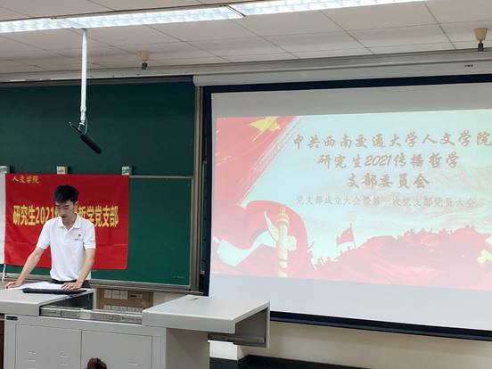研究生2021级传播哲学支部委员会成立仪式”,学习“习近平总书记在庆祝中国共产党成立100周年大会上的重要讲话精神”。此次大会由支部书记陈子龙同志主持,院党委委员张诗婷同志以及党支部全体成员参与。
