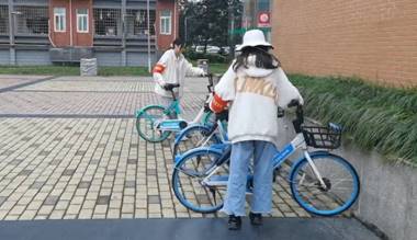 下午4时30分,党支部成员在西南交通大学犀浦校区南区二食堂附近开展党建活动——摆放共享单车活动,活动区域分为负责宿舍区和食堂营业区,活动内容为及时规范不合理停放单车现象与搬运不合理车辆移动位置。小组成员在孙蕊同志的分配下,进一步分为两个小组,每个成员佩戴本科广告党支部的套袖开展共享单车摆放与规范活动。各组成员分别在食堂附近、宿舍区域内展开活动,针对摆放不规整的现象,对停车的学生进行引导,从源头上避免摆放乱、杂等问题;针对车辆错乱、停车区域不合理的问题,通过搬运将车辆移动至合理的位置,恢复了有序的车辆摆放情况。