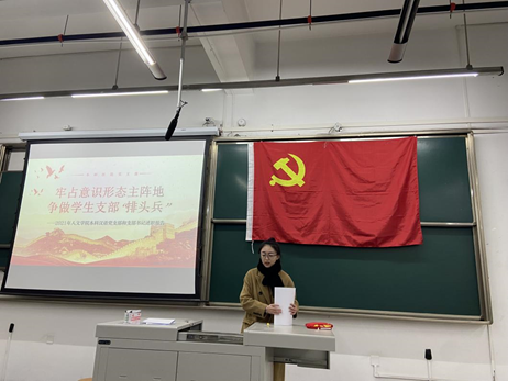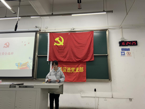 2021年12月17日下午4:00,本科汉语党支部于X2218教室召开2021-2022学年第二次党员大会暨支部年度总结大会。本次会议共有三项议题:1、讨论并表决六位预备党员转正申请;2、选举本届支委会;3、进行支部年度总结。本次支部大会由本科汉语党支部书记刘晗悦主持,大会现场内纪律良好,党员及入党积极分子全体参会。