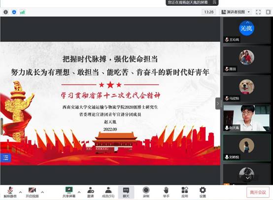 2020级博士研究生、省委理论宣讲团青年宣讲分团成员赵天胤同志担任主讲人。