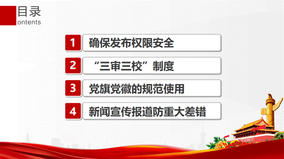 接下来,李春雨同志向大家介绍了党旗党徽的使用规范。她提醒各位党员在使用党旗党徽时要下载官方最新版本,确保版本标准;在开展活动时要检查宣传物品是否损坏、场地是否合适等。最后,李春雨同学讲解了新闻宣传报道中的重大差错参考指南,对于常见的错误表述给予了纠正,其中包括新闻宣传报道中的基础表述、常用表述以及常见词汇、语调、语序等正确示范。