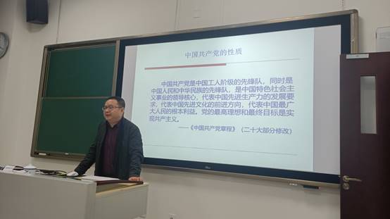 沈如泉老师通过分别阐述“党的最高理想和最终目标”、“党在社会主义初级阶段的基本纲领”、“党在现阶段的奋斗目标”和“党的最高纲领与最低纲领的辩证统一关系”四个方面,加深了大家对于党的纲领和奋斗目标的理解与体会。此外,沈如泉老师结合自己的入党经历,告诉同学们要端正自己的入党动机。同时,希望同学们要进一步加强理论学习,增强自身思想觉悟和道德修养,从党史学习中吸取信仰的力量,深刻感悟党的初心使命,以实际行动积极向党组织靠拢。