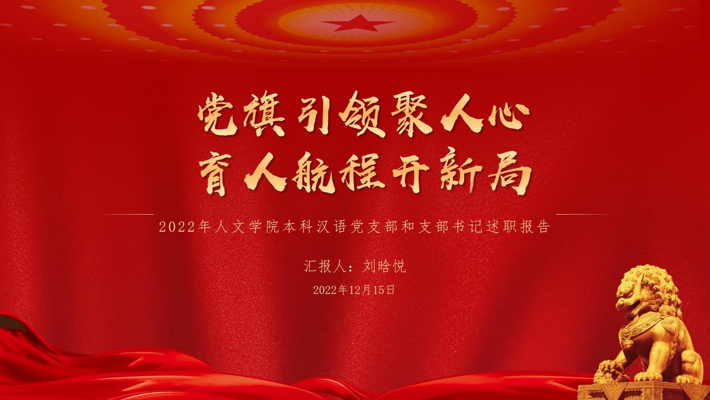 15个基层党支部——4个教师党支部和11个学生党支部依次进行述职报告,就2022年支部工作情况进行总结反思。其中,机关哲学教工党支部书记王晓妍就支部基本情况、开展的工作、取得的成效进行分享。她表示:“在上级党委的正确领导下,本支部成功开展一系列党建活动,但还存在党建与业务融合不足等问题。来年我们将充分发挥支部优势,以党建创新带动业务创优。”