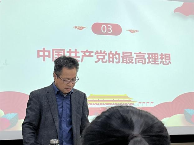 副院长沈如泉首先阐述了中国共产党百年历程中的伟大精神,并围绕“党的最高理想和最终目标是共产主义”讲述了中国共产党的最高理想及现阶段目标。