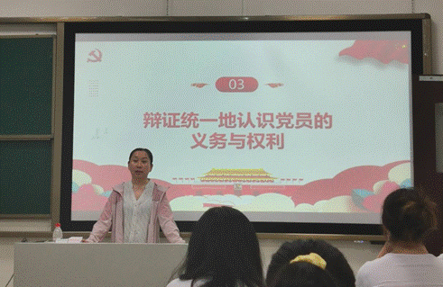 党委委员、副院长胡红同志为积极分子主讲“党员的权利与义务”。