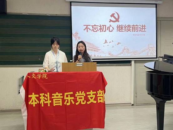本科音乐党支部在音乐系开展党史读书分享会。本次学习由冯赞、廖亚军、朱雨萱、白芳菊、黄维担任推荐人,支部全体同志参与活动。