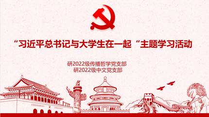 研2022级传播哲学党支部联动研2022级中文党支部依托“腾讯会议”APP开展“习近平总书记与大学生在一起”主题党日活动。本次学习由王超同志主讲,全体党员及入党积极分子参与学习。