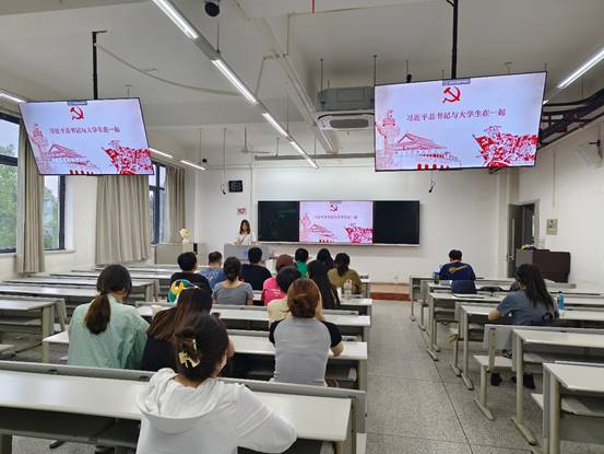 2023年6月13日19时40分,本科传播党支部在X8319教室召开“习近平总书记与大学生在一起”主题学习活动,支部全体正式党员、预备党员以及部分积极分子参会,郑馨怡同志做学习汇报。