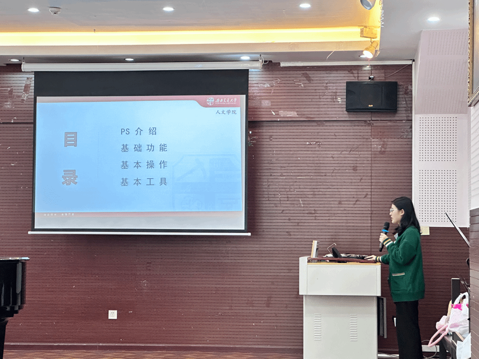 本科音乐党支部的公开课展示完毕后,由本科广告党支部袁玉娇同志带领大家学习Photoshop的相关运用,此次学习内容涵盖了四个板块:PS的介绍、基础功能、基本操作、基本工具。袁玉娇同志系统地讲解了Photoshop的版面布局和功能,并且教授大家如何运用PS处理照片,如何嵌入智能对象和一些快捷键的使用等。