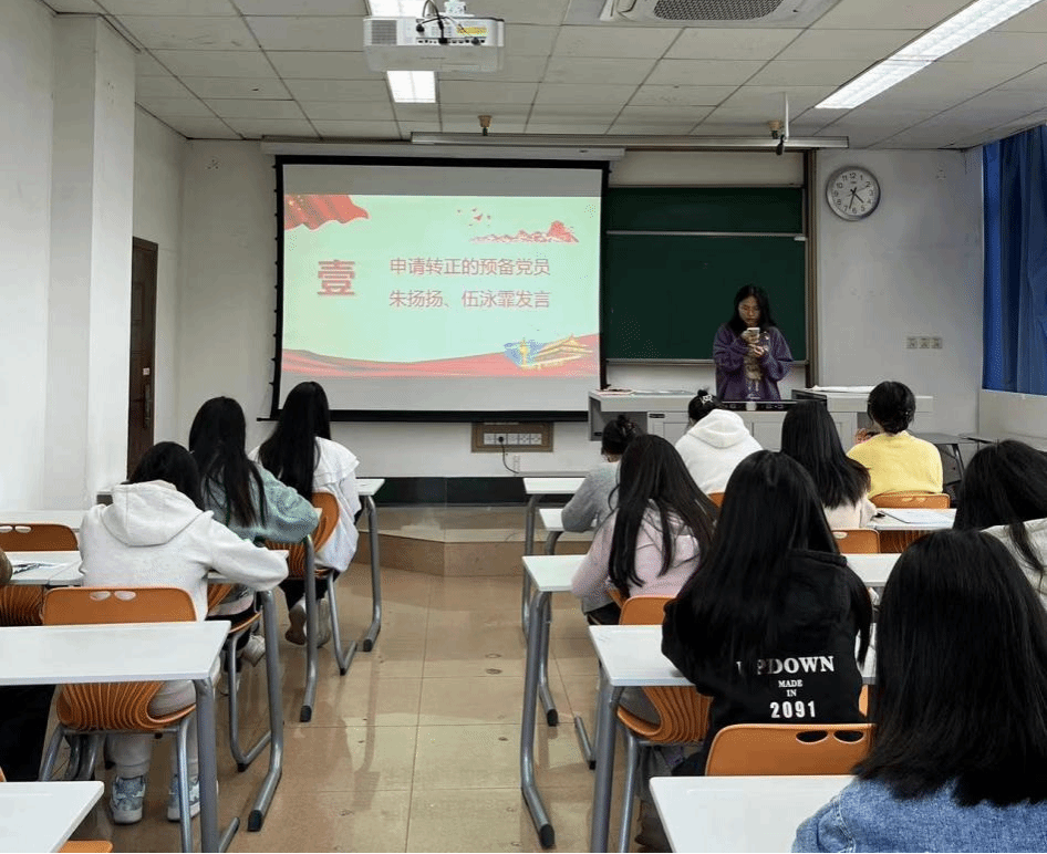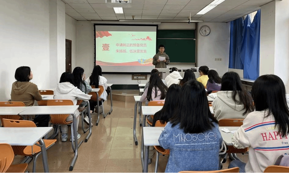 接下来,由申请转正的朱扬扬、伍泳霏同志介绍自己在预备期的各方面表现。朱扬扬同志表示自己自获批准为中共预备党员以来,表现出了良好的党性修养和积极的政治表现,为集体的进步和发展做出了积极贡献。伍泳霏同志表示自己在预备期期间,思想进步,谨慎谦虚,严格以党员标准要求自己。
