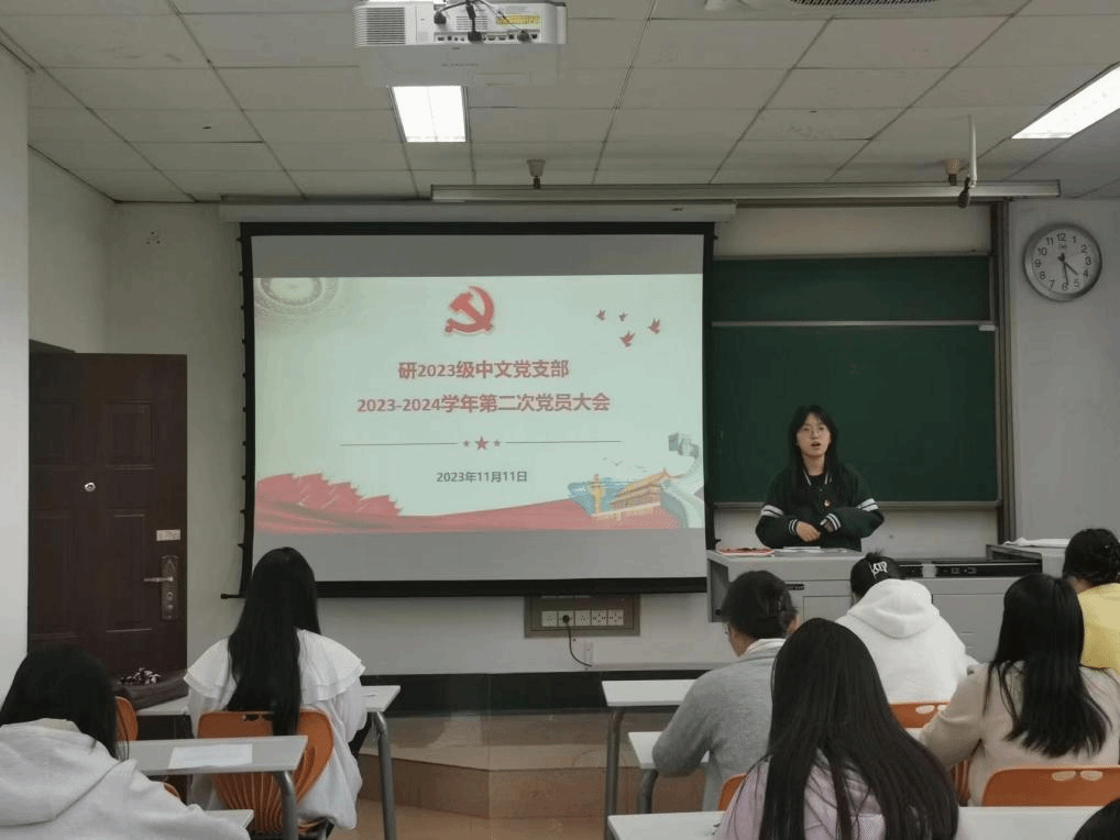 研2023级中文党支部在九里校区逸夫楼4221教室召开2023-2024学年第二次党员大会,议题为讨论并表决预备党员转正。本次党员大会由党支部书记王艺橙同志主持,会议内纪律良好。