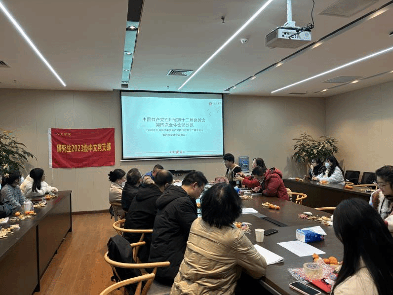 为深入学习贯彻习近平新时代中国特色社会主义思想,加强师生互动交流,2023年12月21日下午4:00,中文教师党支部与研2023级中文党支部于犀浦校区X31004开展联动学习会议。本次会议由教师党支部书记吴德利同志主持,两个支部全体党员到会学习。