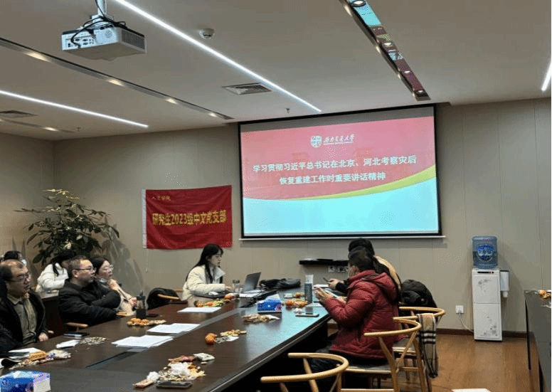 其次,王艺橙同志带领同志们学习习近平总书记在北京、河北考察灾后恢复重建工作时的重要讲话精神。学习完成后,王艺橙同志表示,我们深刻体会到中国共产党切实将人民的生命财产安全放在第一位。作为青年党员,在灾害发生后我们应冲锋在前,尽最大努力保障人民群众生命财产安全。