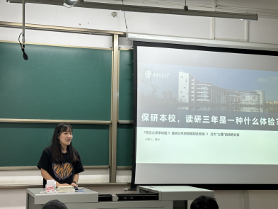 第一位进行分享的是2017级传播学专业本科生、2021级新闻传播学专业研究生姚卉同学。她以“保研本校读研三年,是一种什么体验”为主题,分享了在本校读研的“土著”优势,包括学业、求职和生活三个方面。其次,她详细地介绍了我校新闻传播学硕士培养体系、培养方案和时间节点。最后,她结合自身读研经历和体验鼓励大家,文科读研需要经常进行自我探索,学会习惯“一个人”,做到内向与外向的双平衡。