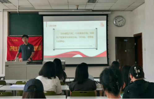 3.主动学习,积极传承红色精神。2024年5月30日14时,研2023级中文党支部于九里校区J4220开展“勇于自我革命,赢得历史主动”主题学习活动。本次活动邀请到研究生“红路”理论学讲团成员于佳琪讲师进行了“永葆青春 永远在路上”主题宣讲。于佳琪讲师向支部成员详细介绍了“全面从严治党”以及“党的自我革命”的内涵,并通过列举反腐案例,对比中西方反腐实践,使得支部成员们深刻认识到党勇于自我革命、争取历史主动的坚定决心。