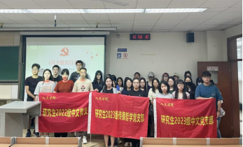 研2022级中文党支部联动研2023级传播哲学党支部、研2023级中文党支部于九里校区J4223开展6月主题党日活动。本次会议由研2022级中文党支部书记万心怡同志主持,全体成员到会学习。