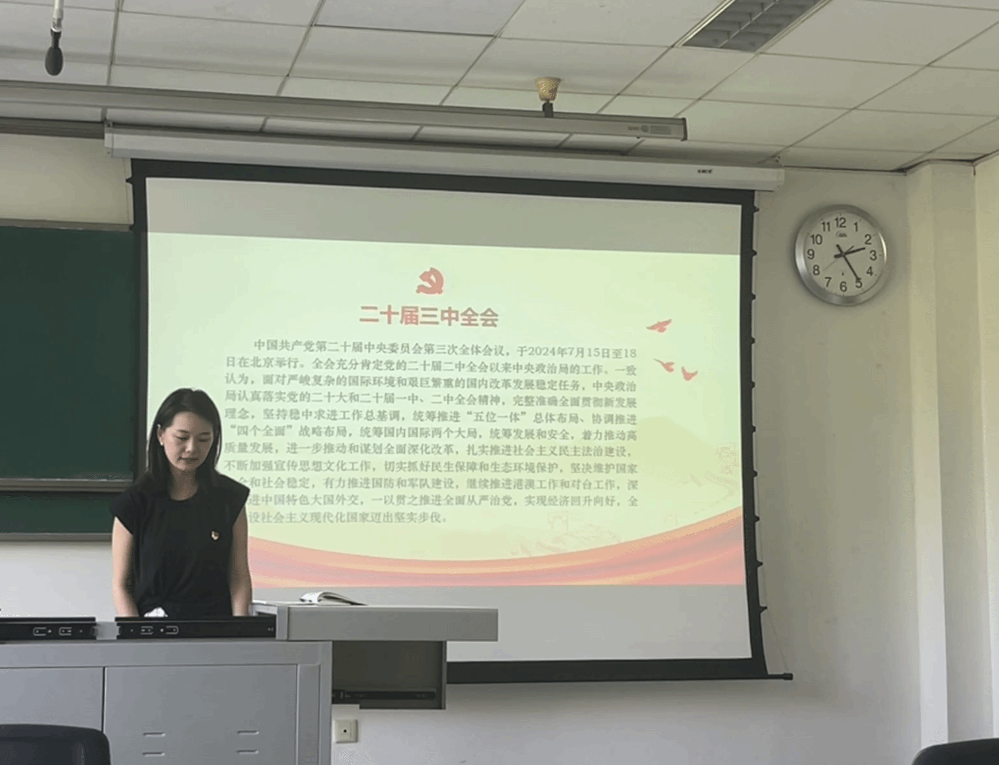 随后,研2023级传播哲学党支部赵鸿绵同志与支部全体成员简要回顾了党的二十届三中全会的召开背景及重大意义,强调了此次会议在全面深化改革、推进中国式现代化进程中的关键作用。通过生动具体的案例和深入浅出的分析,带领大家深入学习了会议通过的各项决策部署。