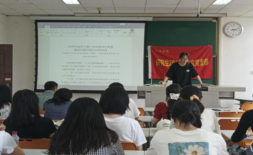 首先,王艺橙同志和刘芷玥同志分别带领大家学习了党的二十届三中全会精神以及《中共中央 国务院关于弘扬教育家精神加强新时代高素质专业化教师队伍建设的意见》重要文件。支部成员认真倾听,一致认为党的二十届三中全会是在以中国式现代化全面推进强国建设、民族复兴伟业的关键时期召开的一次十分重要的会议。
