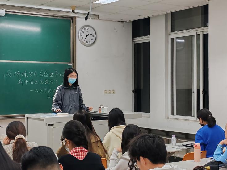 研2024级党支部于九里校区J4221教室举办了“七十五载砥砺奋进,鉴往知来再谱华章”——庆祝新中国成立75周年主题学习教育活动。本次活动开启了示范性学生党支部特色活动的第一篇章,即“忆峥嵘岁月,庆盛世华诞”新中国史党课学习活动,活动由杨佳艺同志主持,研2024级党支部全体成员到会学习。