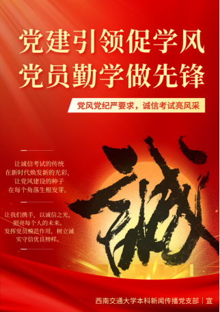 本科新传党支部于犀浦校区X2223开展了“党建引领促学风,党员勤学做先锋”主题党日活动。本次活动结合期末考试时间节点,邀请了支部优秀学子进行学习经验分享,同时依托传播和广告专业优势,制作展示了一批“诚信”主题特色作品,本科新传党支部书记周桎宏老师参与此次活动并作点评。
