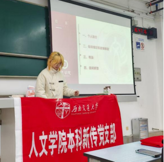 随后,支部内的董晨熙、成佩峰、文盛、魏坤益四名同志积极发挥党员先锋模范作用,立足个人学习和保研经历,向支部成员分享了个人在校期间的学习规划、目标设定、时间分配等各方面的经验和收获,鼓励支部低年级同志积极尝试,勇于探索,早做规划,合理安排时间和提高信息搜索能力。