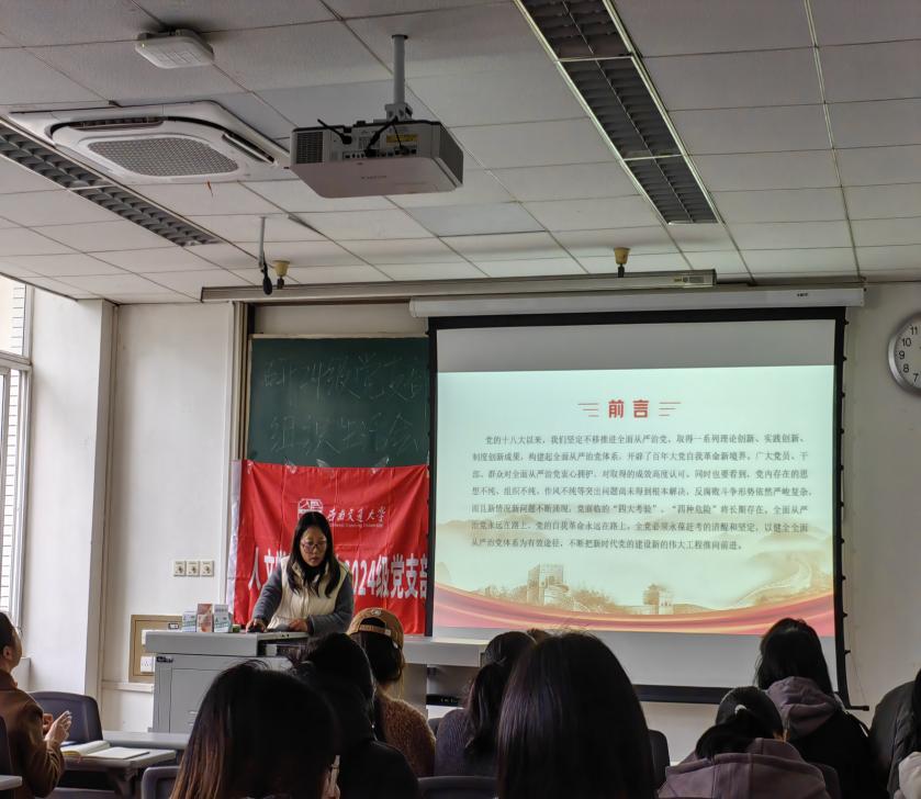 研2024级党支部于九里校区J4222教室开展3月主题党日活动。此次活动由李欣睿同志主持,支部全体成员到会学习。