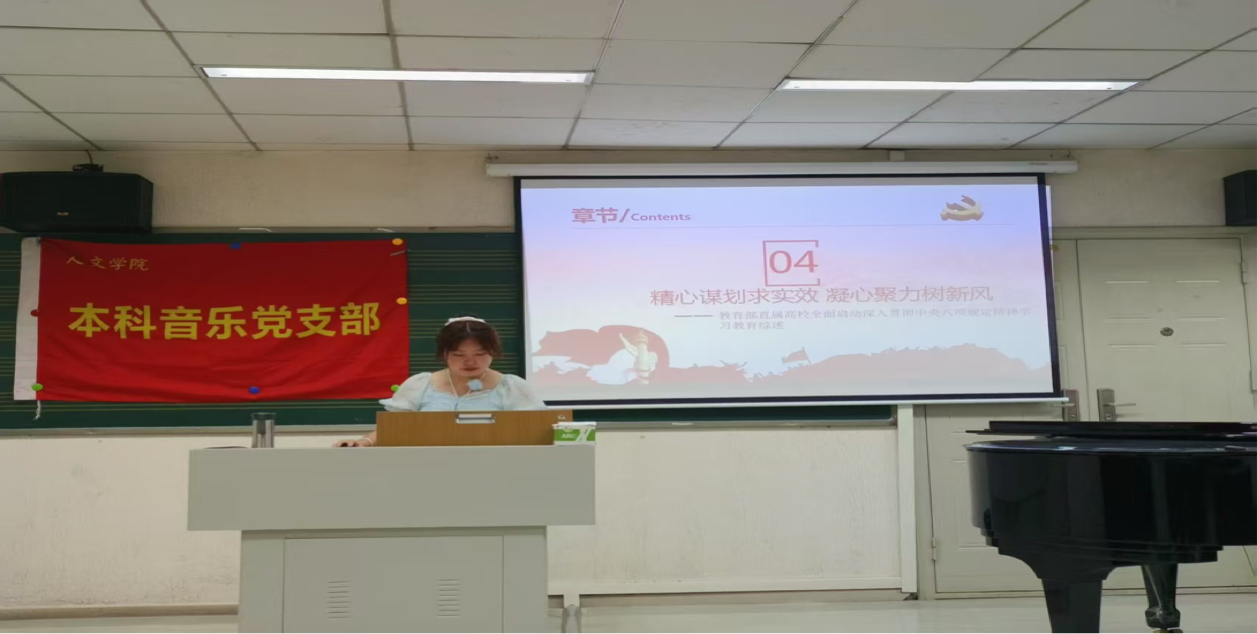 本科音乐党支部在犀浦校区音乐系音专一教室开展5月主题党日活动。本次活动由邱志豪同志主持,支部全体成员参加学习。