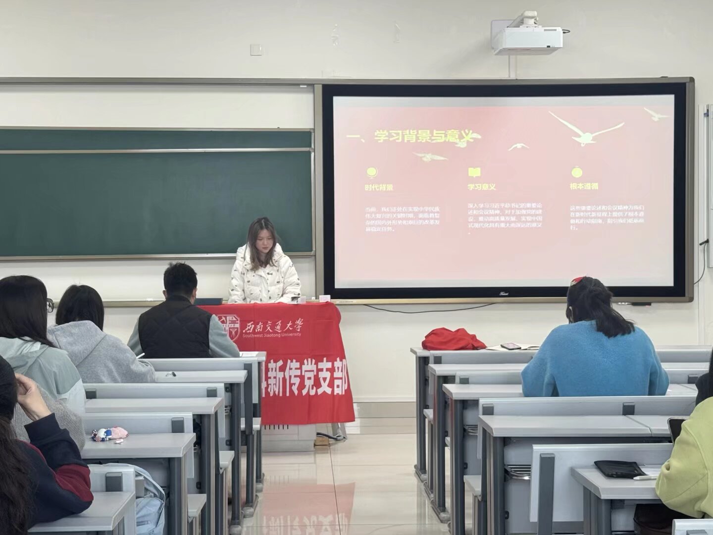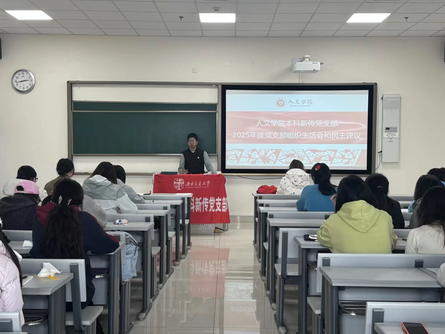 党委副书记陈曦轶同志为支部建设与党员发展提出三点意见:一是做好传帮带工作,发挥党员的先锋模范作用,形成支部内部互帮互助的良好氛围;二是注重全面发展,党员不仅要抓好学业成绩,更要积极参与各类竞赛、实践活动,锤炼综合能力,将能力转化为就业竞争力;三是立足国家发展,把个人职业选择与国家战略需求、社会发展大局紧密联系起来,在服务国家发展中实现个人价值。