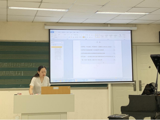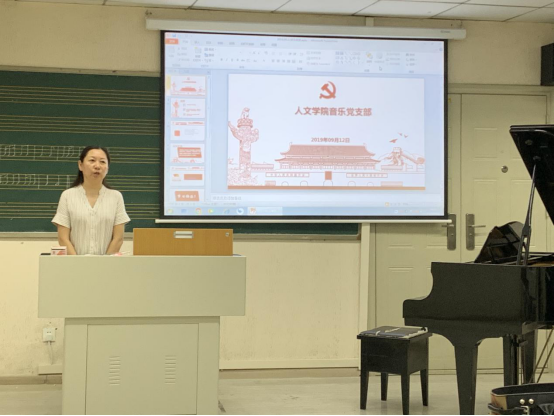 音乐教师党支部9月12日在音乐专业教室开展了学习习近平总书记关于‘不忘初心、牢记使命’重要讲话精神”主题党日活动,院党委委员、副院长胡红同志作主讲。
