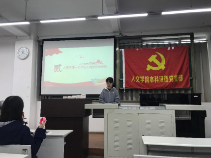 大会的第二项是申请人和介绍人依次向大会作报告。4名预备党员从思想、工作、学习生活等方面向同志们报告了自己在预备期的表现,特别是在思想政治上取得的进步,表达了希望按期转为正式党员的意愿。5名发展对象谈了自己对于党的认识,汇报了成为入党积极分子以来的思想状况,从实际出发,从小事出发,从内心出发,展示了自己对党的忠诚和热爱,表达了渴望成为党员的意愿。联系他们的入党介绍人也对他们的思想、品质、经历和表现向大会作出了负责任的报告。