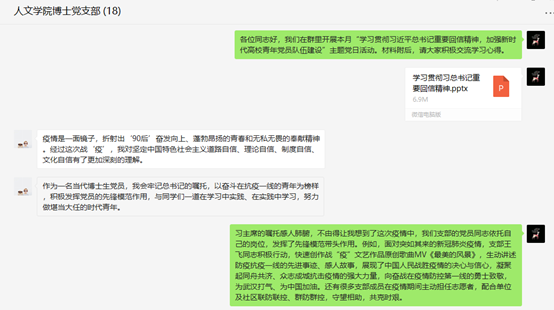 活动前,支部通过微信群发送了学习资料请各位党员同志自学,积极鼓励大家线下线上学习交流。