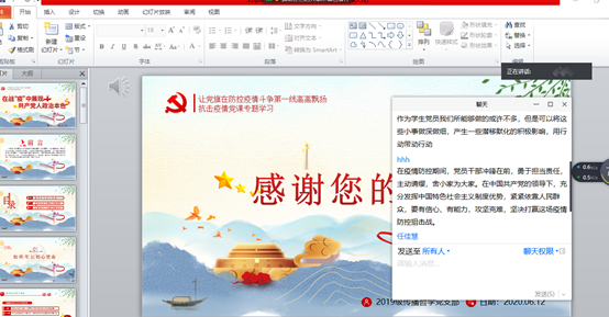 2020年6月12日下午18:30分,2019级传播哲学党支部在腾讯会议线上召开了让党旗在防控疫情斗争第一线高高飘扬抗击疫情微党课专题学习,本次会议由支部书记林茂主持,会议内容围绕始终牢记初心使命、坚持发扬党的优良传统和作风和不断提升工作的本领和能力三方面进行。
