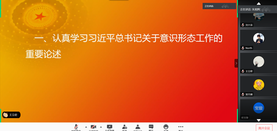 本科传播党支部在线上腾讯会议开展深入学习领会习近平总书记关于意识形态工作的重要论述的党日学习活动。本次学习活动由传播党支部朱旭晖同志主持。