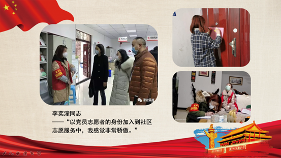 疫情就是命令,防控就是责任。疫情期间,本科汉语党支部成员纷纷为抗击疫情贡献了自己的力量。曾参与当地疫情防控工作的徐舟雨同志和李奕潼同志为各位分享了他们的防疫志愿者经历。李奕潼同志感触颇深:“在疫情面前各行各业都在以力所能及的方式参与到对抗疫情的斗争中。邻里之间的团结与温情让我动容,带上象征使命的红袖章,以党员志愿者的身份加入家乡社区的疫情防控队伍中,我感到十分的骄傲。”