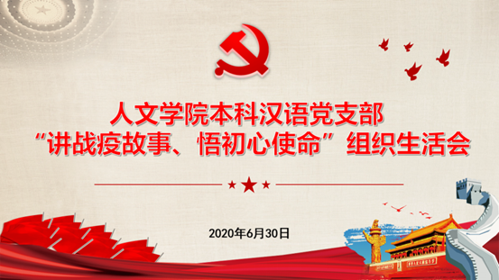 本科汉语党支部于6月30日10:30,利用“腾讯会议”平台顺利召开“讲战疫故事,悟初心使命”组织生活会。会议由本科汉语党支部书记刘晗悦同志主持,澳门赌场老虎机
