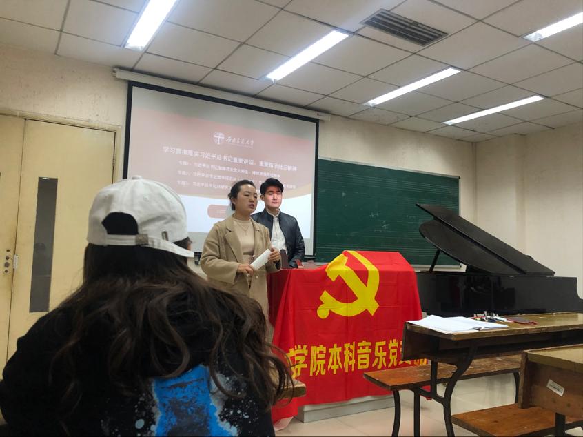 本科音乐党支部在音乐系音专2教室进行主题党日活动。