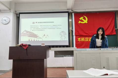 2020年11月5日下午16:00,本科汉语党支部在X8215教室召开会议,按照学校党委“读党史、学党史、知党史”的活动通知,选取自读资料,认真学习了《抗击新冠肺炎疫情的中国行动》白皮书、《习近平关于统筹疫情防控和经济社会发展重要论述选编》和《中国共产党的九十年》,重温我们党从成立以来,为中华民族和人民群众建立的不朽功勋,感受2020年新冠肺炎疫情期间我党所做出的巨大贡献。本次读书会系列专题二由支部的三个领学小组逐一进行读书汇报,并由支部成员展开研讨交流。会议由本科汉语党支部书记刘晗悦同志主持。