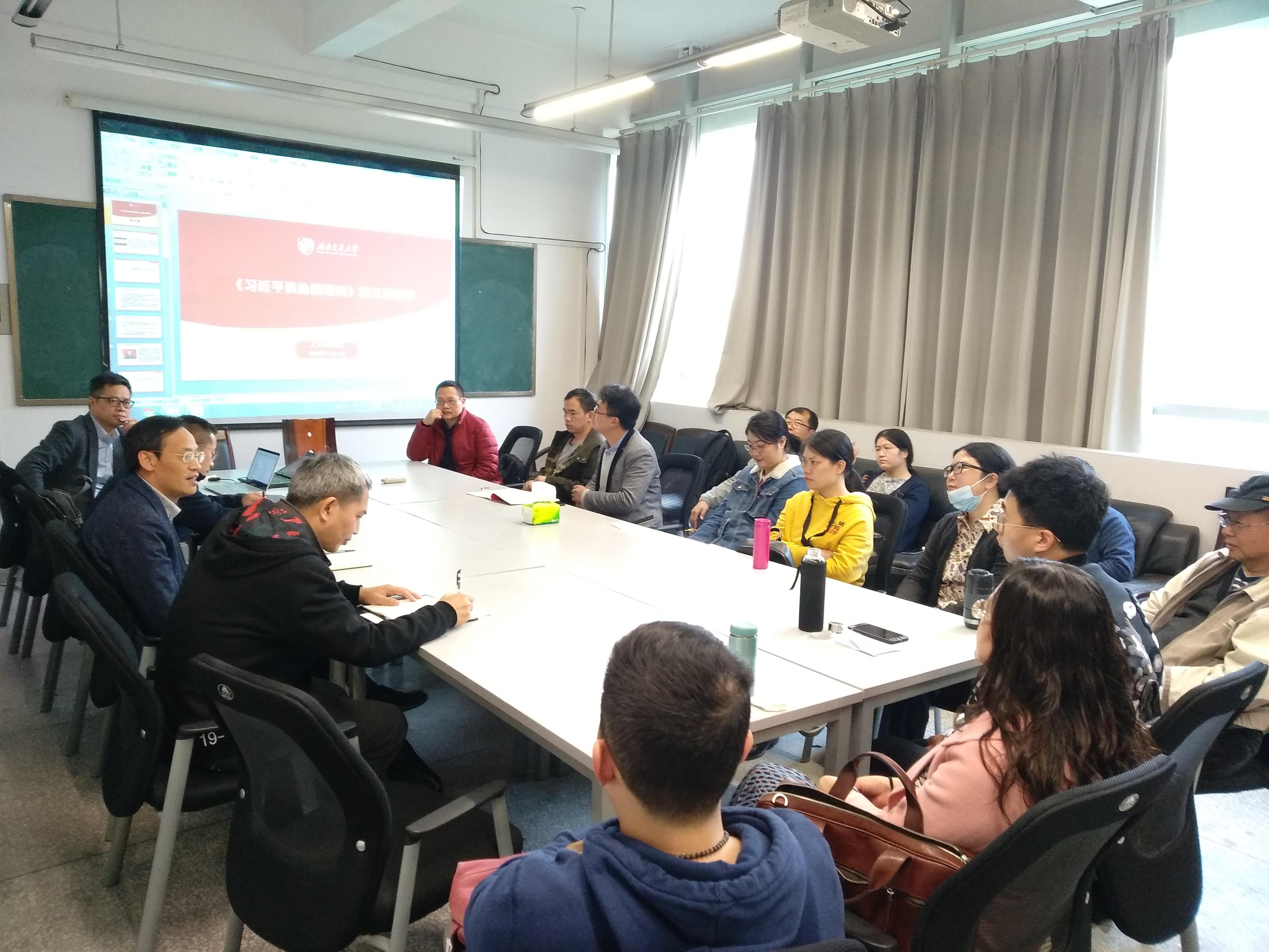 桂富强同志与在座中文系教师党员亲切交谈。“中文学科要走什么样的路?”“在交大生长的中文学科如何做出‘交大特色’?”桂富强同志指出,要结合“十四五”学科规划的制定,从历史、时代、学科等多维度深入思考“新文科”建设,做好人文学科与工科的学科交叉研究;要科学认知学科发展规律,从交大的存在逻辑、中文学科的存在逻辑、新文科的存在逻辑去思考学科建设的未来,厘清交大中文学科未来的发展方向。