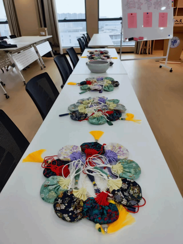 工会为老师们购置了香囊,由老师们根据自身需求在药剂师的指导下制作。在香囊制作过程中,老师们既可以依照提前准备的 “安神香囊”“提神车载香囊”等经典配方进行制作,也可以在深入了解中药材功效的基础上,自主搭配药材,制作独具个性的香囊。茶包制作区域,医师们提前磨制好粗茶粉末,师生们根据自身需求,将粉末装入泡茶袋并绑紧,制成具有美容养颜、补气血功效的养生茶包。