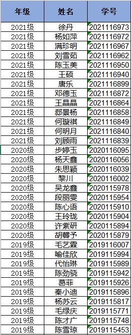 国家励志奖学金拟推荐名单: