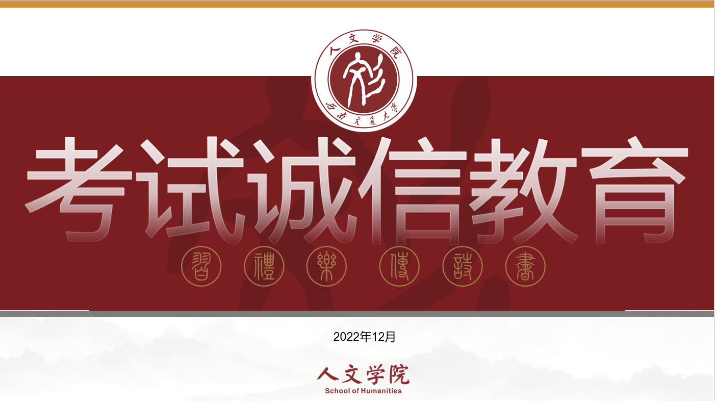 12月3日-12月6日,各班在班长的带领下陆续召开了本班的考试诚信教育主题班会,同学们一一学习了《西南交通大学本科生考试违规处理办法》,并举了相应实例以警醒同学们要诚信考试,展现交大学子的优良校风。同时,所有同学均完成了诚信考试承诺书的签订。