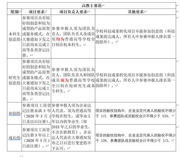 (二)参赛项目只能选择一个符合要求的赛道报名参赛,根据参赛团队负责人的学籍或学历确定参赛团队所代表的参赛学校,且代表的参赛学校具有唯一性。参赛团队须在报名系统中将 项目所涉及的材料按时如实填写提交。已获本大赛往届总决赛各赛道金奖和银奖的项目,不可报名参加本届大赛。