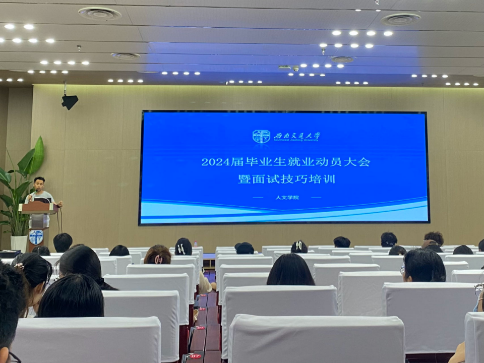 2021级研究生和2020级本科生齐聚犀浦校区二号报告厅,隆重举行了2024届毕业生就业动员大会暨面试技巧培训活动。本次动员大会由朱宇骏同学主持,澳门赌场老虎机
