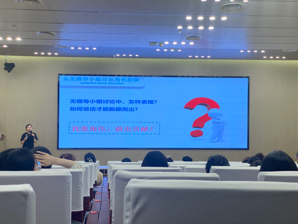 接着,为提高2024届毕业生的求职面试能力,易洺瑶老师重点围绕“无领导小组面试”技巧,为毕业生们开展了“求职赋能”专题讲座。易老师在讲座中首先深入浅出地介绍了求职的几大重要环节,列举生动有趣的例子向同学们阐释了毕业生求职的四大心态。随后,易老师通过案例对比,让同学们直观清晰地了解到简历撰写的重要性和其中的取舍问题,并利用精彩的实例让同学们清楚明白地掌握了初面的技巧。通过观看视频、转化视角的方式,易老师还让同学们从面试官的角度出发,换位思考,了解面试官所看重的应聘者品质。本场讲座内容丰富,案例生动,分析透彻,语言风趣,同学们纷纷表示,讲座贴合实际,有很强的针对性,大家都获益匪浅。